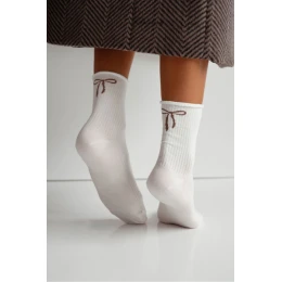 Beztlakové dámské ponožky zajišťují pohodlí po celý den a klasický ribovaný vzor jim dodává stylový charakter. Krásu celku doplňuje ozdobná mašle umístěná vzadu, která představuje ženský a módní akcent. Ideální na každodenní nošení pro ženy, které ocení pohodlí.