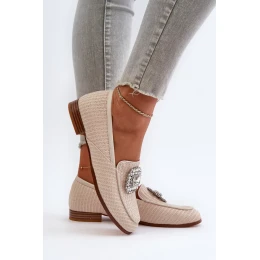 Dámske mokasíny na plochom podpätku s brošňou Béžová D&A