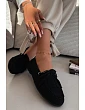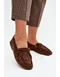 Dámské mokasíny vyrobené z měkkého eko semiše, krásně vypadají na noze. Vepředu jsou dekorativní třásně a ozdobné šněrování ve tvaru mašle, které dodávají jemný, ženský charakter. Vnitřek je potažen měkkou vložkou z eko kůže, díky čemuž mokasíny poskytují pohodlí i během dlouhého dne. Plochá podrážka je činí ideálními jak do práce, tak na procházky či setkání s přáteli. Při výběru velikosti se řiďte tabulkou velikostí.