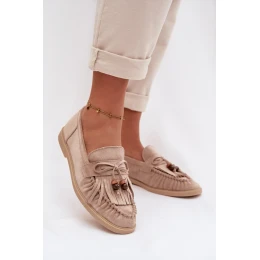 Dámské mokasíny s třásněmi a korálky Béžové Teressa