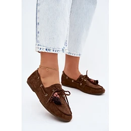 Dámské mokasíny s třásněmi a korálky Hnědé model 22107394 - Boto