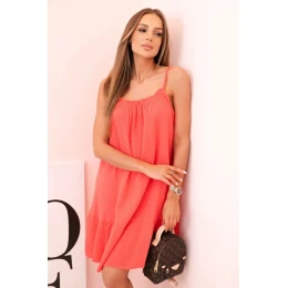 Dámske mušelínové šaty s ramienkami a volánom malinová
