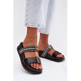 Dámské sandály na platformě jsou stylovým tipem na teplé dny. Model se vyznačuje lesklým páskem s pleteným vzorem, který přitahuje pozornost a dodává celku módní charakter. Zlatý detail spojující dva pásky je elegantní akcent, který podtrhuje výjimečný vzhled obuvi. Platforma zajišťuje pohodlí při nošení a stabilitu, takže sandály jsou ideální pro letní stylizace. Při výběru velikosti se řiďte tabulkou velikostí.