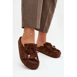 Dámské nazouváky Mule s třásněmi a korálky Čokoládové Belissa