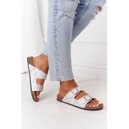 Damskie Klapki Na Korku Z Klamrami Srebrne Vivio