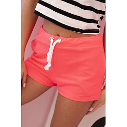 Dámske bavlnené šortky so šnúrkou na stiahnutie neónovo ružové