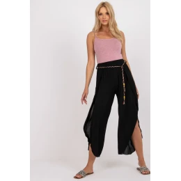 Vzdušné dámske nohavice s vysokým sedom a ozdobným viazaním v páse.