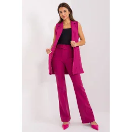 Táto súprava vesty a nohavíc je ideálnou voľbou pre rôzne príležitosti, od formálneho po pracovný alebo každodenný štýl. Je vyrobená z vysoko kvalitného polyesteru a poskytuje elegantný vzhľad a odolnosť. Nohavice so širokými nohavicami a vysokým pásom dodávajú šmrnc, zatiaľ čo hladký dizajn a absencia vreciek vytvárajú elegantný vzhľad. Podšitá vesta je pohodlným doplnkom, ktorý dodáva celej súprave luxusný vzhľad. Oba diely súpravy sú dlhé, čo dodáva súprave elegantný nádych. Nohavice s vysokým pásom zvýrazňujú pás a polyesterová tkanina je nielen odolná, ale aj príjemná na nosenie. Ide o ideálnu voľbu pre slávnostné príležitosti, do práce alebo na večerné posedenie.