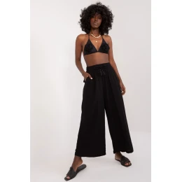 Kalhoty palazzo jsou ideální volbou pro každodenní outfit, kombinující pohodlí s elegancí. Vyrobené z viskózy, která poskytuje měkkost a prodyšnost, se skvěle hodí jak na teplé dny, tak na chladné večery. Široké nohavice dodávají volný, ležérní vzhled, který skvěle ladí s neformálním stylem. Další výhodou jsou praktické vložené kapsy, které zvyšují funkčnost kalhot. Vysoký pas zdůrazňuje pas a opticky prodlužuje siluetu, což činí tyto kalhoty výhodnými pro každou postavu. Šňůrky pro zachycení umožňují ideální přizpůsobení pasu a absenci zapínání zaručuje pohodlné nošení. Jednoduchý jednobarevný design činí tyto kalhoty univerzálním kouskem šatníku, který lze snadno kombinovat s různými topy a doplňky. Jedná se o univerzální volbu pro ženy, které ocení módu a pohodlí ve svém každodenním životě.