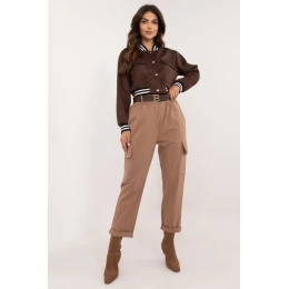 Dámske cargo nohavice s ležérnym charakterom, ktoré sú ideálne na každodenné nosenie aj do práce. Sú vyrobené zo zmesi bavlny, polyamidu a elastanu a poskytujú pohodlie a voľnosť pohybu. Dominuje hladký vzor, ktorý nohaviciam dodáva univerzálny a štýlový vzhľad. Vysoký pás a zopnuté nohavice zvýrazňujú siluetu a dodávajú celku elegantný charakter. Nohavice majú praktický zopnutý pás, ktorý umožňuje ideálne prispôsobenie pásu. Bočné, vsúvacie vrecká zdôrazňujú ich funkčnosť a cargo štýl, vďaka čomu sú skvelou voľbou na každú príležitosť.