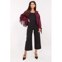 Tieto elegantné nohavice culotte sú dizajnom, ktorý spája štýl a pohodlie. Sú vyrobené z vysokokvalitného polyesteru s prídavkom elastanu, sú hladké, ľahké a pohodlné na nosenie. Model s vysokým pásom krásne zvýrazňuje pás, zatiaľ čo široké nohavice dodávajú postave ľahkosť a modernosť. Nohavice sa zapínajú na skrytý zips umiestnený na ľavej strane, čo zaručuje estetický vzhľad. Absencia vreciek podčiarkuje elegantný, minimalistický štýl. Nadčasové nohavice culotte sú ideálne na každodenné nosenie, do práce alebo na slávnostné príležitosti a hodia sa k mnohým štýlom.