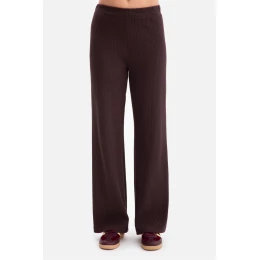 Dámske nohavice vyrobené z pruhovanej pleteniny s gramážou 250 g/m2 , ktorá je mäkká, pružná a pohodlná na nosenie. Model nemá vrecká ani podšívku, s praktickým elastickým pásom, ktorý poskytuje pohodlie a prispôsobenie sa postave. Voľne padnúce pletené nohavice sú prispôsobené v páse a na bokoch a ďalej sa voľne skladajú, čo zaručuje pohodlie a ľahkosť. Dlhé rovné nohavice, ktoré sa smerom dole mierne rozširujú, zužujú postavu a dodávajú celku eleganciu. Stredne vysoký pás zaručuje, že nohavice dobre sedia a zvýrazňujú pás, a plná dĺžka po zem im dodáva moderný efekt predĺženia nôh. Táto kombinácia pohodlia, kvality a nadčasového štýlu je navrhnutá a vyrobená v Poľsku z pleteniny vyrábanej v Lodži.