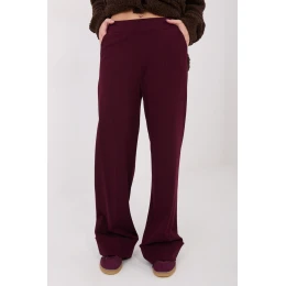 Elegantné a pohodlné dámske nohavice so širokými nohavicami, ktoré sú ideálne na každý deň a do práce. Sú vyrobené zo zmesi viskózy, nylonu a elastanu, sú mäkké, priedušné a elastické, čo zaručuje pohodlie počas celého dňa. Dominantný jednofarebný vzor im dodáva univerzálny a nadčasový charakter. Nohavice majú vysoký pás, ktorý krásne zvýrazňuje pás. V zadnej časti pásu je vložená elastická guma, ktorá zaručuje ideálne prispôsobenie a pohodlie pri nosení bez potreby zapínania, model je úplne bez zapínania. V spodnej časti nohavíc je široký lem, ktorý dodáva módny a uvoľnený akcent. Široké nohavice a lem dodávajú nohaviciam elegantný vzhľad, pričom si zachovávajú ležérny charakter. Funkčné bočné, vložené vrecká zvyšujú praktickosť modelu.