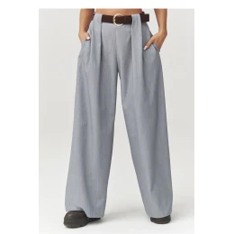 Dodajte svojmu šatníku nádych elegancie a pohodlia s našimi nohavicami s vysokým pásom a širokými záhybmi. Je to skvelá voľba pre ženy, ktoré ocenia štýl a pohodlie. Nohavice sú vyrobené z kvalitnej tkaniny, ktorá sa krásne skladá a je ideálna na každodenný aj formálny styling. Vďaka širokým nohaviciam a jemným záhybom nohavice opticky predlžujú postavu a ozdobný opasok so sponou im dodáva moderný charakter. Skvele sa kombinujú s košeľou, sakom alebo objemným svetrom. Je to ideálny model do práce aj na spoločenské stretnutia, ktorý vsádza na univerzálny, nadčasový strih a decentnú farebnosť, ktorá nikdy nevyjde z módy. Vyrobené v Taliansku.