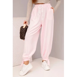 Dámske nohavice so širokými nohavicami a viazaním v spodnej časti candy pink