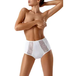 Dámske nohavičky 086 Babell - biela farba - klasické nohavičky s plnším a vyšším strihom - z veľmi kvalitnej a jemnej bavlny - zdobené kvetinovým motívom - zadná časť je hladká