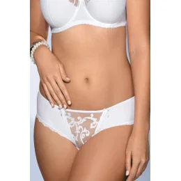 Dámske nohavičky 1352 Ava - biele - jemné mašličky na ozdobu - vyrobené z hladkého mikrovlákna, vpredu vyšívaný kvetinový motív - spodný okraj ukončený čipkou - zadná časť hladká Zloženie materiálu: 91% polyamid + 5% bavlna + 4% elastan