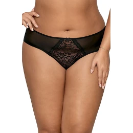 Dámske nohavičky 1396 Crystal black plus AVA - čierne - predné vložky z čipky a sieťoviny - zadná časť je z hladkej tkaniny - nohavičky sú zakončené elastickou pogumovanou čipkou - zdobené pôvabnou saténovou mašľou
