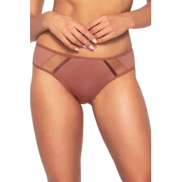 Dámske nohavičky 1923 Protea brown AVA - hnedé - vyrobené z hladkého mikrovlákna - bočné časti so sieťovinou - predná časť zdobená lesklými prúžkami - zadná časť z hladkej tkaniny a dvojitej sieťoviny Zloženie materiálu: 91% polyamid + 5% bavlna + 4% elastan