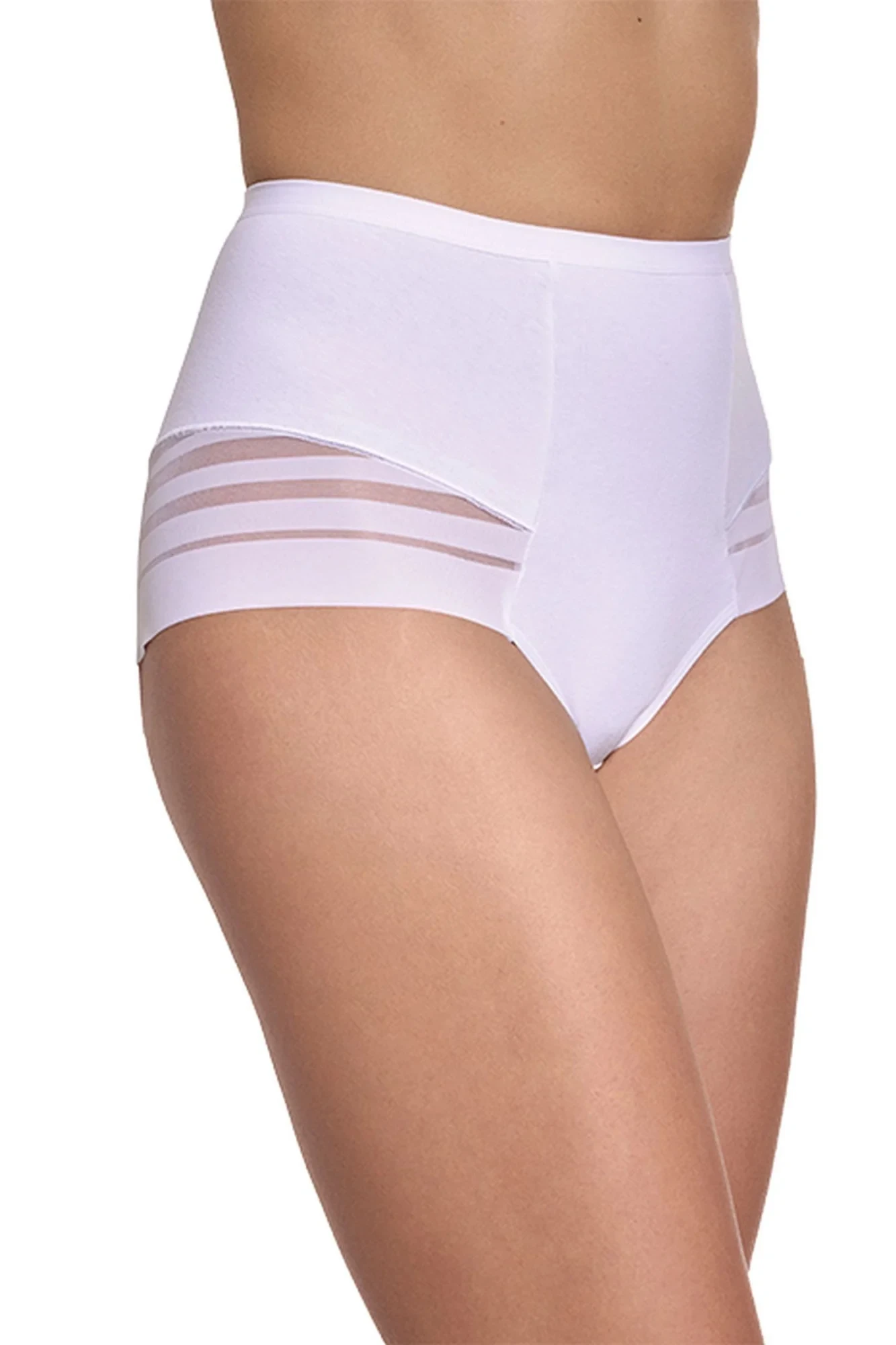 Dámske nohavičky 209 white GABIDAR - biela farba - vyrobené z kvalitnej bavlny - zadná časť a boky zdobené priehľadnými prúžkami - vyšší pás Zloženie materiálu: 95% bavlna + 5% elastan