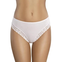 Pekné dámske nohavičky Ganidar 41 v klasickom strihu s vyšším pásom a čipkovaným lemom. K dispozícii v bielej a čiernej farbe.