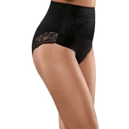 Ženské modelujúce nohavičky s vysokým, vstavaným strihom. Pás z nestahujúceho materiálu. Ideálne na korekciu bruška a bokov. Pás a zadoček zdobí jemná čipka s kvetinovým motívom. Spodná časť z bavlny.