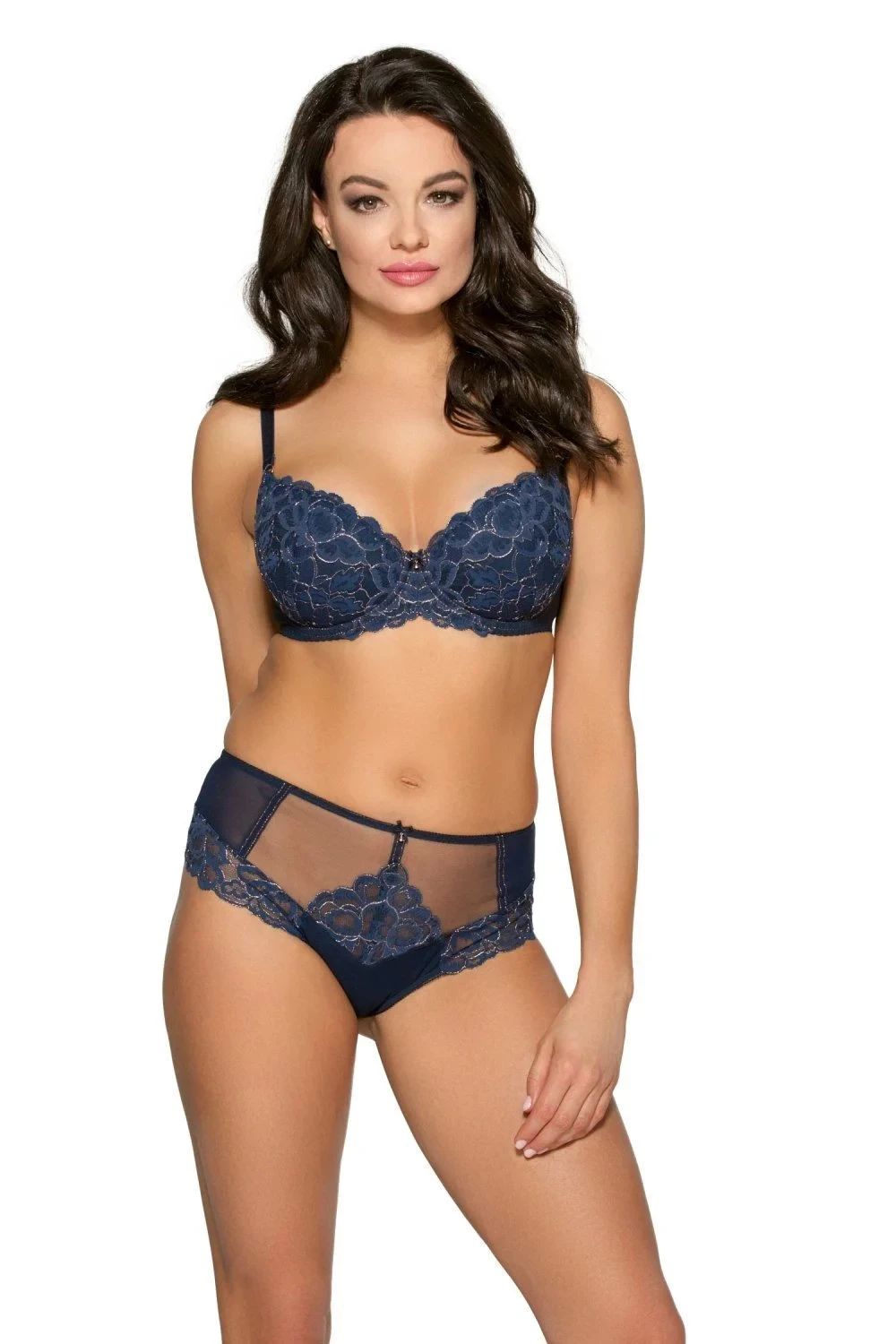 Dámske nohavičky 1990 Casabella AVA - tmavomodré - z priesvitnej sieťoviny zdobenej čipkou Zloženie materiálu: 91% polyamid + 5% bavlna + 4% elastan