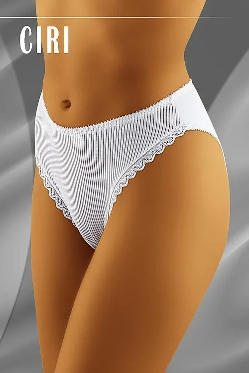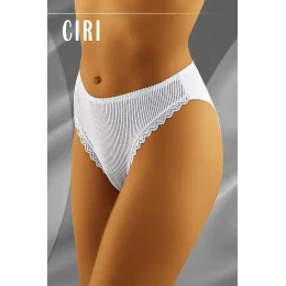 Dámske nohavičky Ciri black Wol-bar - čierna farba - predná časť je z pletenej pruhovanej látky - zadná časť je hladká - horný okraj je zdobený čipkou Zloženie materiálu: 83% polyamid + 17% elastan
