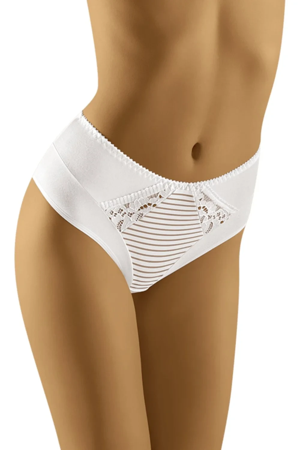 Pohodlné nohavičky Eco-Ka Wolbar - vyrobené z vysoko akostnej ekologickej bavlny - s vyšším pásom - vpredu krajková aplikácia a pruhovaný vzor - model vhodný pre ženy s plnšími tvarmiMateriálové zloženie: 90% bavlna + 7% elastan + 3% polyamid