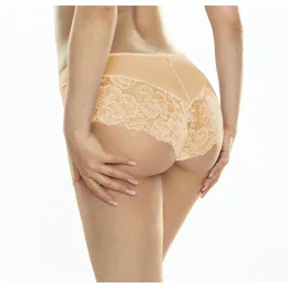 Boky a zadný diel nohavičiek tvorí pružná sieťovina a čipka s kvetinovým motívom.