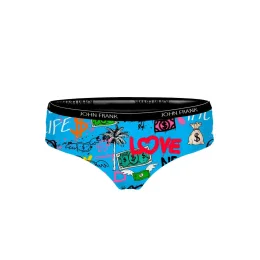 Dámske hipster nohavičky od značky John Frank vyrobené z vysokého podielu bavlny. Nohavičky s módnou potlačou sú veľmi príjemné na dotyk a pohodlné na nosenie. Jemný, stredne široký elastický pás má okolo seba logo John Frank. Do vnútornej časti je zakomponovaný bavlnený klin pre pohodlné nosenie.