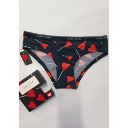Dámske nohavičky klasického strihu značky John Frank z vysokého podielu bavlny. Nohavičky s módne spracovaným potlačou sú veľmi príjemné na dotyk a pohodlné pri nosení. Jemná, stredne široká guma v páse má okolo logo John Frank. Do vnútorného dielu je zapracovaný bavlnený klin pre komfortné nosenie. Nohavičky sú balené v darčekovej krabičke.