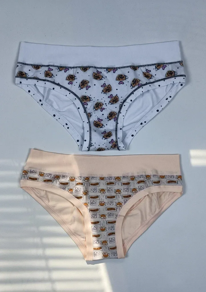 Dámske bavlnené nohavičky od značky Lovelygirl. Klasické nohavičky sú príjemné na dotyk, hladké a na prednej strane majú potlač kávy. Po obvode je pohodlný elastický pás a vo vnútornej časti je všitý malý klin pre pohodlné nosenie. Farba nohavičiek sa vyberie náhodne alebo ju môžete napísať do poznámky. Cena je za jeden kus. Sú zabalené v krabici.