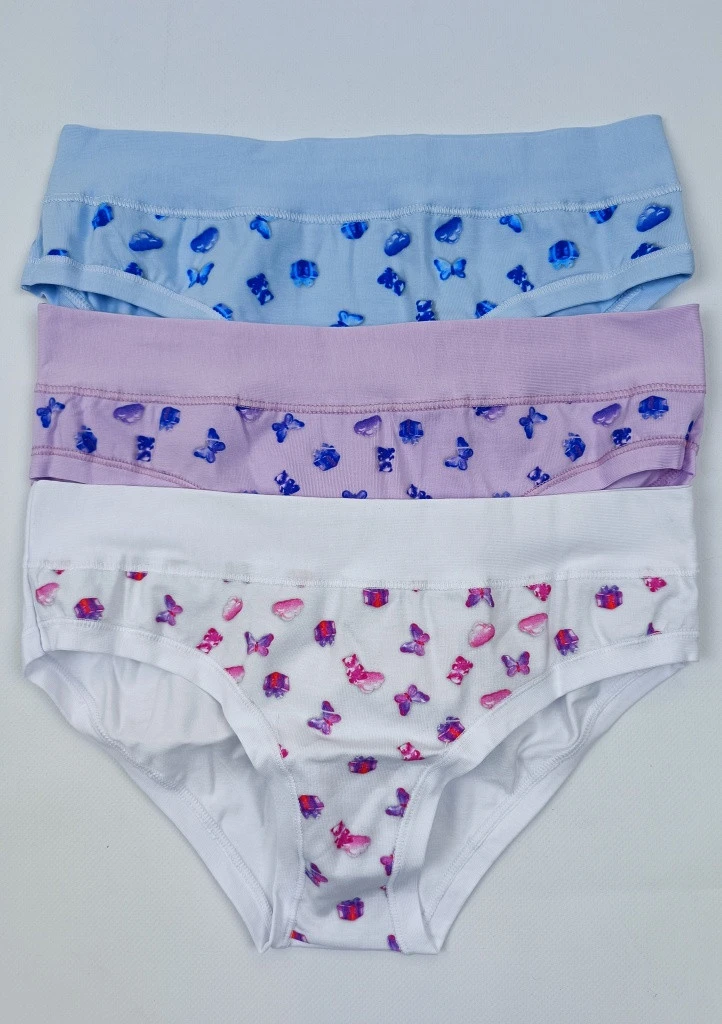 Dámske bavlnené nohavičky od značky Lovelygirl. Klasické nohavičky sú veľmi príjemné na dotyk, hladké a na prednej strane majú jemnú farebnú potlač. Po obvode je pohodlný elastický pás a vo vnútornej časti je všitý bavlnený klin pre pohodlné nosenie. Farbu nohavičiek vám vyberieme náhodne alebo ju môžete napísať do poznámky. Cena je za jeden kus. Sú balené v škatuľke. Materiálové zloženie: 90 % bavlna, 10 % elastan.