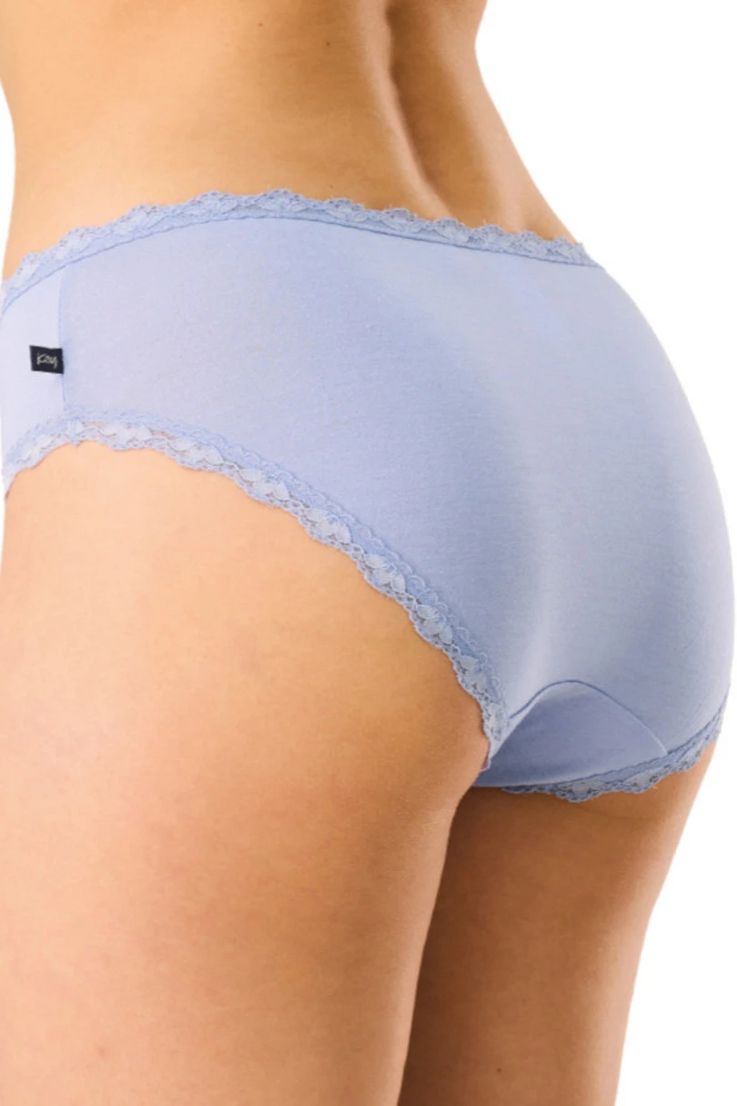 Figi zostały wykończone ozdobną koronką w pasie i przy nogawkach, co dodaje im lekkości i romantycznego charakteru. Klasyczny krój zapewnia komfort noszenia oraz dobre dopasowanie do sylwetki.