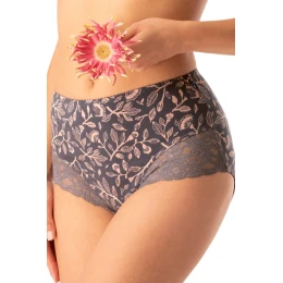 Figi damskie Keya LPF 545 to połączenie wygody i kobiecego uroku. Wykonane z miękkiej, oddychającej tkaniny, doskonale dopasowują się do sylwetki, podkreślając jej naturalne kształty. Przód zdobi subtelna koronka o kwiatowym motywie, dodająca całości elegancji i lekkości. Elastyczny pas i płaskie szwy gwarantują pełen komfort podczas codziennego noszenia. Model ten sprawdzi się zarówno na co dzień, jak i w wyjątkowych chwilach, kiedy chcesz poczuć się pięknie i pewnie.