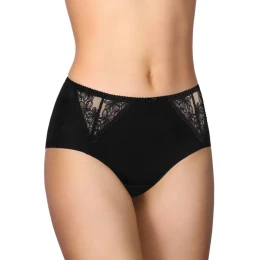 Dámske nohavičky M058 sú dokonalou kombináciou pohodlia a elegantného dizajnu. Vysoký strih a plnší strih poskytujú jemné tvarovanie okolo brucha, zdôrazňujú prirodzené tvary a zoštíhľujú. Prednú časť zdobia jemné čipkové vsadky, ktoré dodávajú romantický a ženský nádych. Vďaka laserom strihaným lemom nohavičiek je spodná bielizeň pod oblečením prakticky neviditeľná, netlačí a nespôsobuje otlaky. Ideálne nohavičky na každodenné nosenie aj na výnimočné príležitosti - pre ženy, ktoré ocenia pohodlie, eleganciu a mierne tvarujúci efekt.