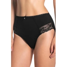 Klasický midi model so širokými bokmi a vysokým pásom. 2 diely v čiernej farbe s čipkovaným lemom na prednej strane. Veľmi univerzálny model. Celopodšité nohavičky s vysokým pásom, ktorý čiastočne zakrýva brucho. Zadná časť zakrýva zadok. Spodná bielizeň tvarujúca postavu. Pohodlná spodná bielizeň na každodenné nosenie. Zloženie látky: 95 % bavlna, 5 % elastan Balenie obsahuje obe verzie prezentovaného výrobku.