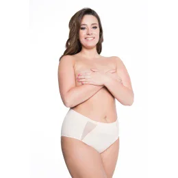 Dámske nohavičky Pearl Julimex - béžová farba - klasický strih - nohavičky majú ľahko zvýšený pás - na bokoch sú prúžky z jemného tylu - jednoduchý dizajn