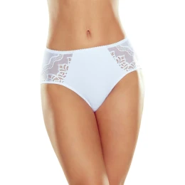 Dámske nohavičky s vysokým pásom, jemnou korekciou bruška, sieťovinou a čipkovanými vsadkami na bokoch.
