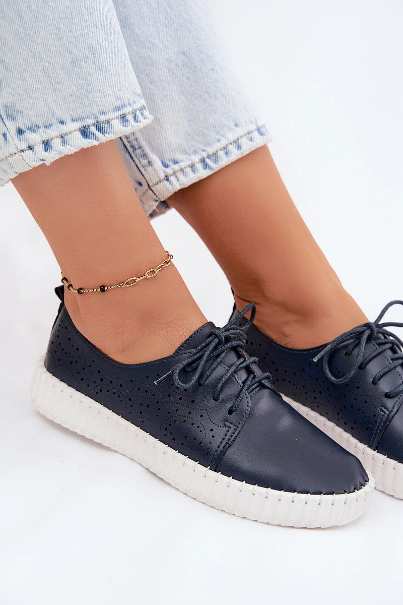 Dámské perforované polobotky jsou pohodlnou volbou na teplejší dny. Perforovaná svršek zajišťuje prodyšnost, takže model je ideální pro každodenní nošení. Model je na šněrování, což umožňuje lepší přizpůsobení šířce nohy. Měkká vložka zvyšuje pohodlí a umožňuje si užívat komfort po celý den. Tento univerzální obuv je ideální na procházky, nákupy nebo každodenní výlety – pro ženy, které ocení pohodlí a uvolněný styl. Při výběru velikosti se řiďte tabulkou velikostí.