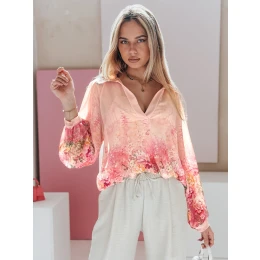 Lekka i przewiewna koszula damska oversize z wyjątkowym kwiatowym printem, który przyciąga spojrzenia. Uniwersalny rozmiar pasuje od XS do L. Wykonana z cienkiego, półprzezroczystego materiału, który delikatnie otula sylwetkę. Dłuższy tył subtelnie wydłuża sylwetkę. Model typu one size z głębokim dekoltem w serek, długimi rękawami zakończonymi mankietami zapinanymi na guziki. Sprawdzi się zarówno do stylizacji codziennych, jak i na wyjścia.