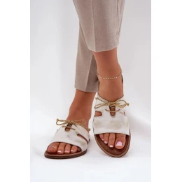Tieto dámske papuče z prírodnej kože sú skvelou voľbou na slnečné dni a spájajú eleganciu s pohodlím. Ploché podpätky zaručujú pohodlie a vkusná zlatá šnúrka na zvršku im dodáva výnimočný šarm. Tieto papuče sú ideálne na rôzne letné štylizácie a budú skvelým doplnkom vášho vzhľadu!
