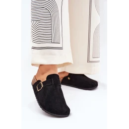Dámské pantofle na korkové platformě. Vyrobené z eko semiše. Zakryté špičky poskytují větší ochranu a přezka umožňuje dokonalé přizpůsobení noze. Profilovaná stélka zaručuje pohodlí po celý den a poskytuje správnou oporu. Tyto pantofle budou vynikající volbou na každodenní nošení, ideální pro casual stylizace, poskytující pohodlí a módní vzhled. Při výběru velikosti se řiďte tabulkou velikostí.