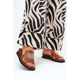 Dámské Pantofle Na Klínu Eko Kůže S Ozdobou Hnědé model 21686804 - Boto