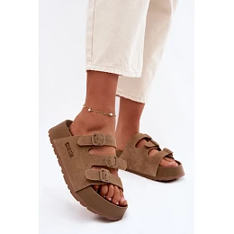 Dámské pantofle na masivní platformě s pásky Big Star TT274530 Camel
