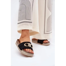 Dámské Pantofle Na Platformě S A Zlatou Dekorací Černé model 21689964 - Boto