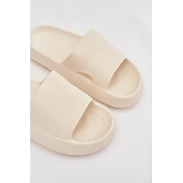 Dámské pantofle vyrobené z pěnového materiálu. Umístěné na platformě, jsou ideální volbou na teplé dny. Pásek s výřezem na boku. Skvělé na pláž, k bazénu a jiné letní výlety, poskytující pohodlí a lehkost po celý den. Při výběru velikosti se řiďte tabulkou velikostí.