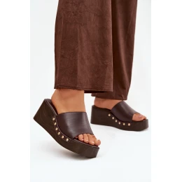 Dámské pantofle na platformě se zlatými sponami hnědé Arionne