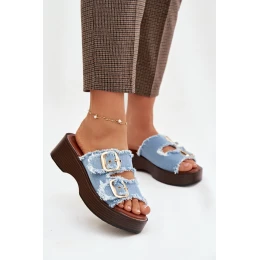 Dámské pantofle na platformě se zlatými sponami modré Renelisse